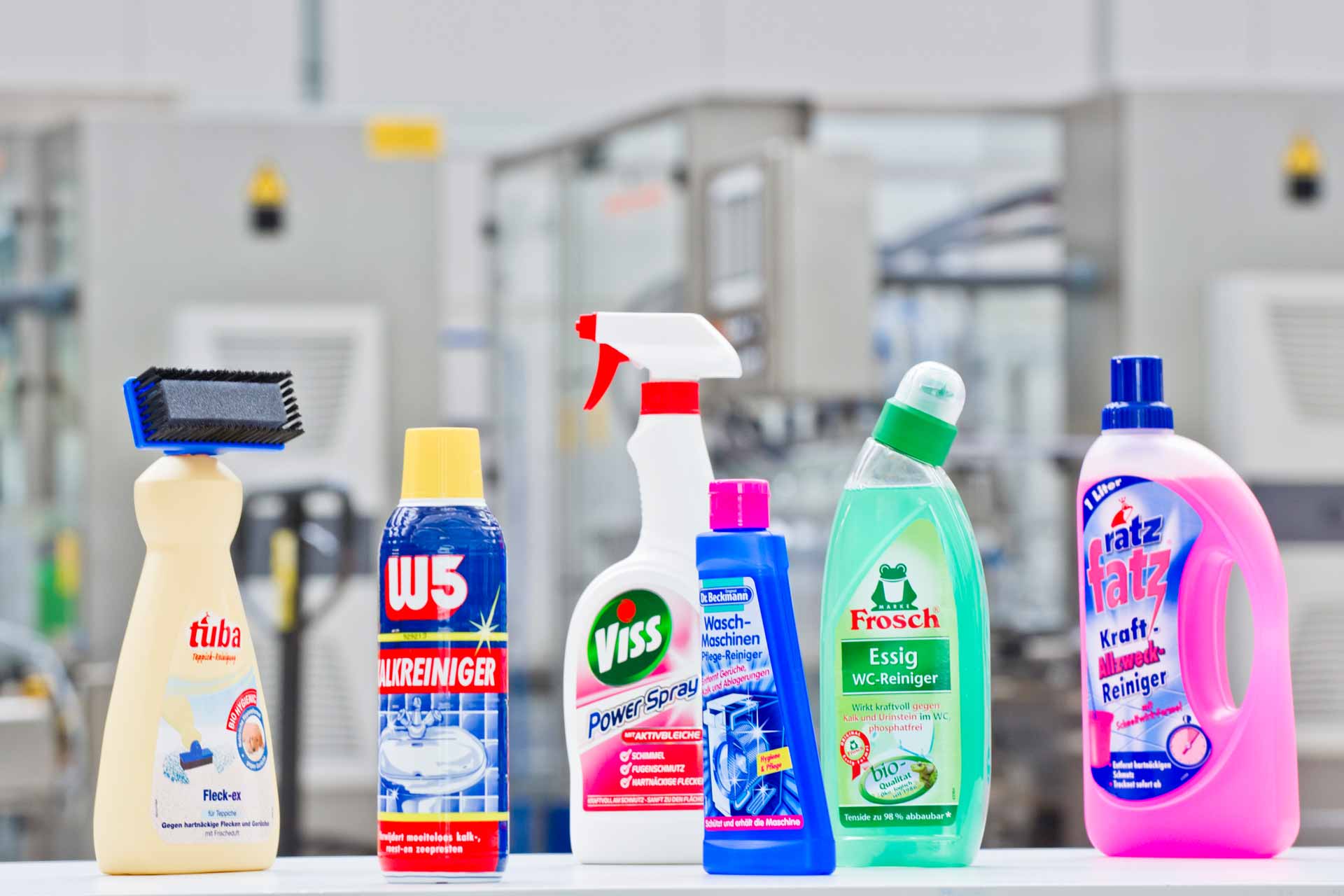 Manche Chemie-Produkte, wie Glasreiniger, werden zum Teil in hohen Stückzahlen hergestellt, mitunter auch mit speziellen Anforderungen, etwa bei der Flaschenform. Eine besondere Stärke der BREITNER Maschinenlösungen ist die hohe Leistungsfähigkeit beim Abfüllen von stark schäumenden Produkten.